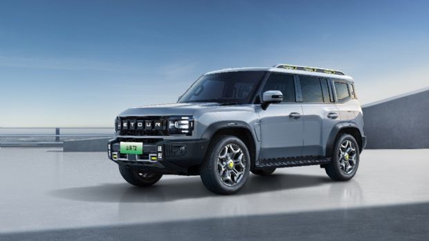 车身侧面,车窗边框见棱见角,轮眉的造型向外凸起,展现出硬派风格,其还采用了悬浮式车顶的设计。尾部方面是经典的“小书包”装配,同时竖置的尾灯在黑框的包裹下,展现出越野气质。