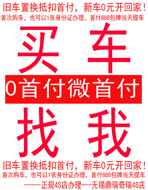 无锡正规4S店无锡汽车0首付0压力+让您安心+终身质保+当天提车!+0首付当天提车+无锡汽车0首付0压力0计划+终身质保+买奇瑞到鼎瑞+1张身份证办理