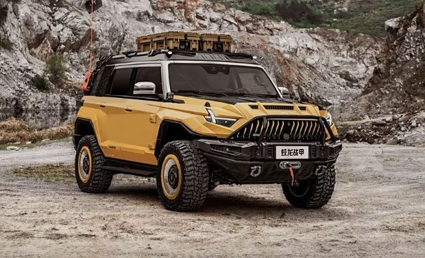 外观方面,新车标配沙漠风暴黄军事涂装,外观沿袭猛士家族“雄浑”设计理念,前脸采用直瀑式中网格栅。新车还提供个性化的定制方案,在发动机盖、车顶和侧梯架等处大量运用了碳纤维材质,整车碳纤维覆盖率达到22.3%。