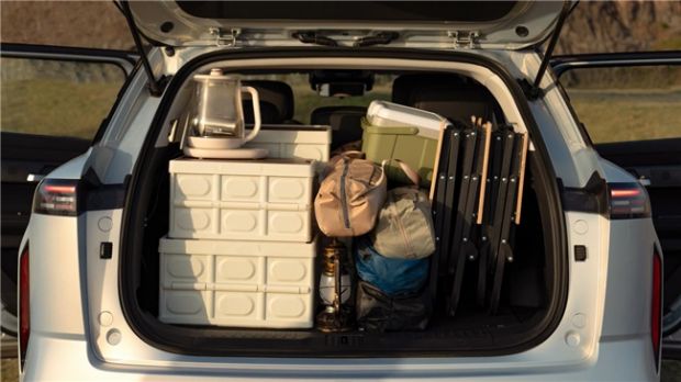这样的“条理”还体现在探索06四驱发现版的空间布局上。雨伞槽、仪表板储物槽、副驾挂钩、手机槽储物空间丰富合理,让遮阳帽、充电宝、水杯等小物件都能有处安放。后排放平后空间可达1388L,无论是露营的帐篷、折叠桌,还是爸爸的钓鱼竿,统统都能装下,车内也依旧井然有序。当全家露营时,外放电功能可以给咖啡机、电火锅和照明设备提供能源。家人团座,灯火可亲,大家一起就着美食,分享旅途中的趣事,无比惬意。