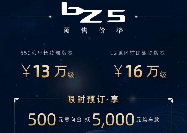 汽车爱好者们注意啦!一汽丰田纯电动中型SUV——bZ5,即将在6月10日正式上市。目前新车已开启预售,提供2款配置选择,预售价区间为13-16万元。现在预订还有超值福利,支付500元意向金就能抵5000元购车款,性价比直接拉满。